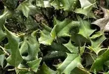 构骨叶冬青学名枸骨,又名猫儿刺、老虎刺、八角刺、鸟不宿、构骨、狗骨刺、猫儿香和老鼠树。常绿灌木或小乔木,高1-3米,二年枝褐色,三年生枝灰白色,叶片厚革质,花淡黄色,果球形,直径8-10毫米,成熟时…全部>>