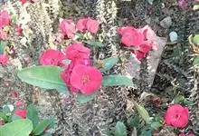 虎刺梅:别称铁海棠,是蔓生灌木植物。茎多分枝,长60-100厘米,直径5-10毫米,具纵棱,密生硬而尖的锥状刺,刺长1-1.5厘米,直径0.5-1.0 毫米,常呈3-5列排列于棱脊上,呈旋转。叶互生…全部>>