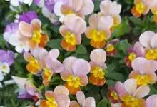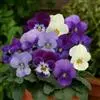 角堇:为堇菜科堇菜属多年生草本植物。株高10-30厘米 ,宽幅20-30厘米。具根状茎。茎较短而直立,分枝能力强。花两性,两侧对称,花梗腋生,花瓣5,花径 2.5-4.0厘米。花色丰富,…全部>>