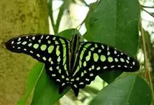青带凤蝶Graphium sarpedon ,又名青凤蝶,是最普遍的中型凤蝶,飞行速度很快。青带凤蝶的翅膀中央有许多浅蓝色的斑点,很整齐地排列成一条直线。这些斑点由上而下逐渐变大,就像一条青色的带子。全部>>