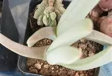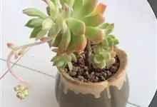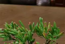 筒叶花月,是景天科青锁龙属的多年生草本植物。植株多分株,灌木状,茎较粗壮,圆柱形,表皮灰褐色;叶片肉质,互生,呈圆筒状,簇生于茎或分枝顶端,叶端呈斜截形,截面为椭圆形;花呈星状,淡白色;花期秋季。…全部>>