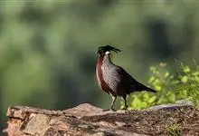 红腹角雉属于鸡形目雉科,雄鸟体羽及两翅主要为深栗红色,满布具黑缘的灰色眼状斑,下体灰斑大而色浅。雌鸟上体灰褐色,下体淡黄色,杂以黑、棕、白斑。全部>>