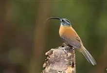 剑嘴鹛:中型鸟类,体长21-22厘米。嘴特别细长而向下弯曲,头顶和头侧烟灰色具长而窄的白色眉纹,在暗色的头上极为醒目,其余上体棕褐色或褐色。颏、喉白色杂有灰色条纹,其余下体锈红色。…全部>>