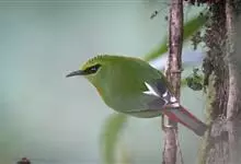 火尾绿鹛是莺科、绿鹛属小型鸟类,体长11-14厘米。上体绿色,头顶至枕具黑色鳞状斑,眼先和眼后黑色,眉纹黄绿色。两翅黑色具黄色和红色翅斑及白色端斑,极为醒目。中央一对尾羽绿色,外侧尾羽鲜红色。…全部>>