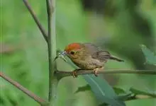 红头穗鹛是雀形目画眉科伪穗鹛属鸟类。成鸟额至头顶或至枕部为棕红色;额基和眼先淡灰黄色;眼圈隐隐泛黄白色;颊和耳羽灰黄色缀有橄榄褐色;其余上体连同翼和尾的表面为橄榄绿褐色;飞羽和尾羽暗褐色,…全部>>