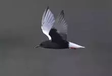 白翅浮鸥是鸥科、浮鸥属下的一种小型水鸟。夏羽嘴暗红色,脚红色。头、颈、翕和下体黑色。翼灰色,翼上小覆羽白色,腰、尾亦为白色,飞翔时除尾和翼有部分白色外,通体黑色。冬羽嘴黑色,脚暗红色,头、颈和下体白色,…全部>>