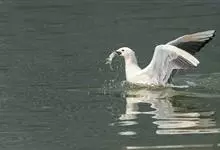 环嘴鸥:是一种常见的鸥, 因嘴巴上的黑环而容易辨认。是中等规模的海鸥。雄鸟比雌鸟大,体长46-54厘米,体重400-700克;雌鸟43-50厘米长,体重300-600克。成鸟翼展大约127厘米。头白…全部>>