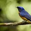 棕腹大仙鹟:体重24-28克,体长15-17厘米,是一种小型的色彩亮丽的鹟。雄鸟上体深蓝,下体棕色,脸黑,额、颈侧小块斑、翼角及腰部亮丽闪辉蓝色。与棕腹仙鹟易混淆,区别在色彩较暗。雌鸟灰褐,…全部>>