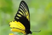 金裳凤蝶是凤蝶科、裳凤蝶属的动物。金裳凤蝶身体呈黑色,头、颈和胸侧有红毛,腹部有黑黄两色相间条纹,雄蝶前翅黑色,具黑天鹅绒光泽,各脉两侧灰白色,后翅金黄色,各室外缘有等腰三角形黑斑1枚,斑内侧有晕,…全部>>