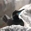海鸬鹚:俗名乌鹈。典型的海上鸬鹚。体长约70厘米,体羽黑色具光泽。脸红色,与红脸鸬鹚甚似,但繁殖期冠羽较稀疏而松软,脸部红色不及额部但脸颊红色较多,幼鸟及非繁殖期的鸟脸粉灰,体型略小。虹膜蓝色;嘴黄…全部>>