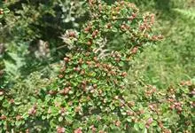 平枝栒子,蔷薇科栒子属落叶或半常绿匍匐灌木,枝水平开张成整齐二列状;叶近圆形或宽椭圆形,稀倒卵形,上面无毛,下面有疏平贴柔毛;花粉红色,近无梗;花萼具疏柔毛,萼筒钟状;花瓣直立,倒卵形;果实近球形,…全部>>