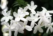 素馨花,木犀科素馨属多年生的攀援灌木植物。攀援灌木,小枝圆柱形,具棱或沟;叶对生,叶轴常具窄翼,小叶片卵形或长卵形;聚伞花序顶生或腋生,花序梗长,苞片线形,花萼无毛,裂片锥状线形,花冠白色,…全部>>