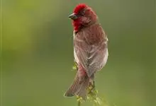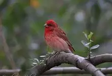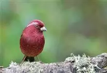 酒红朱雀小型鸟类,体长13~15厘米。雄鸟通体深红色,头部深朱红或棕红色,下背和腰玫瑰红色,眉纹粉红色而具丝绢光泽。两翅和尾黑褐或灰褐色、具暗红色狭缘,内侧两枚三级飞羽具淡粉红色先端。…全部>>