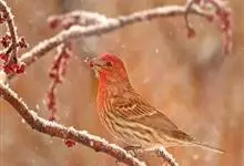 大朱雀:体重33-52克;体长167-205毫米;体形较大;为不常见留鸟。体羽深红色;羽中央具白色或带粉白色斑点,颊深红色;雌鸟体羽淡灰色,稍暗的颊具有阴暗或带褐色斑纹;下背和腰无斑纹。…全部>>