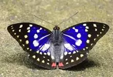 大紫蛱蝶为大型蝶种,翅展约86~110mm。翅紫黑色,有白色斑点点缀其中,雄蝶的翅具强烈紫色虹彩,其余部分暗褐色,后翅臀角具粉色斑。雌蝶体型较大,但是没有蓝紫金属光泽。原产于东亚的蝶类。…全部>>