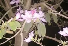 洋紫荆:落叶乔木;树皮暗褐色,近光滑;幼嫩部分常被灰色短柔毛;枝广展,硬而稍呈之字曲折,无毛。叶近革质,广卵形至近圆形,宽度常超过于长度,先端2裂达叶长的1/3,裂片阔,钝头或圆,两面无毛或下面略被…全部>>