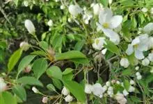 山荆子 Borkh.):为落叶乔木,树高可达4-5米,最高可达10米以上。灰褐色,光滑,不易开裂。新梢黄褐色,无毛。嫩梢绿色微带红褐。叶片椭圆形,先端渐尖,基部楔形,叶缘锯齿细锐。伞形总状花序。花白色,…全部>>