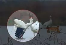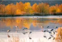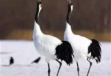 丹顶鹤:是鹤科、鹤属的一种大型涉禽,体长120-160厘米。颈、脚较长,通体大多白色,头顶鲜红色,喉和颈黑色,耳至头枕白色,脚黑色,站立时颈、尾部飞羽和脚黑色,头顶红色,…全部>>
