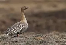 豆雁,雁形目鸭科。成鸟头、颈、背灰褐色,带淡黄色羽缘;尾上覆羽白色,尾羽黑褐色带白端,故飞行伸展时可见尾基和尾端各有一条白色弧线;翼上覆羽灰褐色,初级覆羽深黑灰色带黄白色羽缘,…全部>>