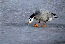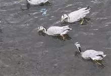 斑头雁是雁形目鸭科雁属鸟类,又称白头雁、黑纹头雁。通体大都灰褐色,头和颈侧白色,头顶有两道黑色带斑;虹膜暗棕色,嘴橙黄色,嘴甲黑色,脚和趾橙黄色;背部淡灰褐色,羽端缀有棕色,形成鳞状斑;颏、喉污白色,…全部>>