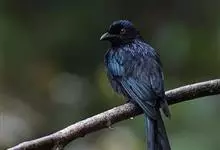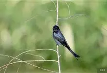 黑卷尾是雀形目卷尾科一属,又称铁练甲、铁燕子、铁林哥、羊蹄刺、榨油郎,体长约30厘米全身蓝黑色而具金属光泽,尾长且分叉较深。幼鸟似成鸟,金属光泽弱,下腹部具近白色的横纹。虹膜暗红色,嘴黑色,脚黑色。…全部>>