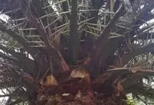 加那利海枣是棕榈科刺葵属植物,单干直立,自然高度可达18米,干径50-90厘米,幼时被以枯叶,老树则叶柄基部残存。具波状叶痕,羽状复叶,顶生丛出。雌雄异株,肉穗花序自叶间抽出,长可达2米。浆果,…全部>>
