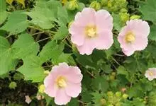 木芙蓉,锦葵科木槿属落叶灌木或小乔木。小枝上有细绒毛;叶片为卵状心形,托叶为披针形,常早落;花单生,花萼为钟形,花冠初为白色或淡红色,后逐渐变为深红色;果实为扁球形,有淡黄色的毛附着。花期8到10月。…全部>>