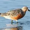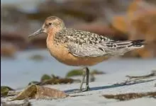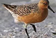 红腹滨鹬,是鹬科、滨鹬属的小型涉禽,体长23-25厘米,嘴较短而直、黑色,脚亦甚短、绿色。体较粗胖。夏季上体灰褐色具黑色中央纹,背具棕栗色和白色斑纹和羽缘,头侧和整个下体栗红色。冬季棕红色消失,…全部>>