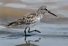 斑胸滨鹬小中型涉禽;体长23厘米,翼展37-45厘米,体重126克。嘴形直,有时微向上或向下弯曲;鼻沟长度远超过上嘴的1/2;羽色暗淡,雌雄羽色及大小大都相同;跗蹠后侧具盾状鳞,…全部>>