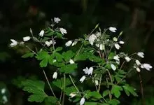 天葵 Makino)是毛茛科天葵属多年生小草本植物,块根长达2厘米,外皮棕黑色。茎高可达32厘米,基生叶为掌状三出复叶;叶片轮廓卵圆形至肾形,小叶扇状菱形或倒卵状菱形,两面均无毛;叶柄长可达12厘米,…全部>>