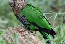 紫红头鹦鹉是鹦形目鹦鹉科的鸟类。鸟体为绿色,头部中间为红色,下颏下方延伸到脸颊下方,环绕整个颈部有一条黑色的环状羽毛,并连接一条蓝绿色的条状羽毛。…全部>>