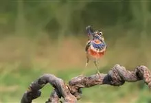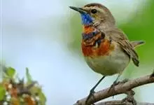 蓝点颏亦称“蓝喉歌鸲”,通称蓝靛颏儿。身体大小和麻雀相似,体长12-13厘米,体重17-18克。头部、上体主要为土褐色。眉纹白色。尾羽黑褐色,基部栗红色。颏部、喉部辉蓝色,下面有黑色横纹。下体白色。…全部>>
