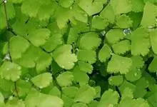 铁线蕨,铁线蕨科铁线蕨属多年生草本植物,其根状茎横走,披棕色披针形鳞片;叶片卵状三角形,顶端钝圆并有细锯齿,叶脉扇状分叉;孢子囊群生于囊群盖下面;无花,以孢子繁殖花色;分株繁殖为主,生长期均可,…全部>>