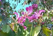 羊蹄甲,别名紫花羊蹄甲、玲甲花,是豆科羊蹄甲属的一种常绿乔木或灌木。树冠开展,枝桠低垂;树皮灰色至暗褐色,近光滑。枝幼时微被灰色短柔毛,后毛脱落;叶硬纸质,近圆形,基部浅心形,…全部>>