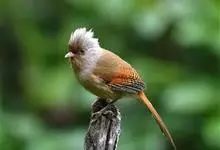 栗额斑翅鹛是噪眉科、斑翅鹛属中型鸟类,体长20-23厘米。头顶具浓密的羽冠,前额栗棕色,头顶灰褐色。上体棕褐色,两翅棕褐色具黑色横斑,翅基外缘有一黑斑,尾呈凸状,棕褐色具黑色横斑。下体棕褐色,…全部>>