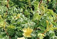 黄刺玫是蔷薇科蔷薇属的直立灌木。高2-3米;枝粗壮,密集;小叶片呈宽卵形或近圆形,边缘有圆钝锯齿,上面无毛;叶轴、叶柄有稀疏柔毛和小皮刺;花单生于叶腋,重瓣或半重瓣,呈黄色;花梗长1-1.5厘米,无毛,…全部>>