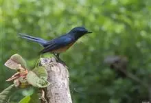 海南蓝仙鹟,Cyornis hainanus ,鹟科蓝仙鹟属的一种小型鸟类,体长13~15厘米。上体包括两翅和尾表面暗蓝色,前额和眼上眉斑较鲜亮。喉、胸暗蓝色,下胸和两胁蓝灰色,其余下体白色。…全部>>