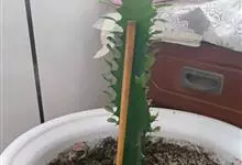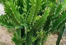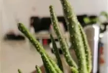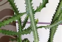 霸王鞭,是大戟科大戟属的多年生肉质灌木,全株含白色乳汁;茎直立,茎基部圆柱形,上部4~5纵棱,边缘波状,外面深绿色;叶互生,上部叶密集,近于簇生,具短柄,其基部有利刺1对;叶片披针形,先端圆,…全部>>