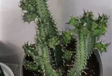 金刚纂,是大戟科大戟属的肉质灌木状小乔木。茎圆柱状,上部多分枝,叶片互生,少而稀疏,顶端钝圆,基部渐狭;花序二歧状腋生,苞叶膜质,总苞阔钟状,裂片半圆形,边缘具缘毛,雄花多枚;花期6-9月。…全部>>
