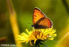 橙灰蝶Lycaena dispar Hauorth,鳞翅目、灰蝶科。这类蝴蝶雌雄异型,雄蝶前翅翅面橙色,顶角向边缘有窄的黑带;后翅基部和臀缘有较宽的黑色区;雌蝶前翅翅面橙色,中室内有2个黑斑,后翅黑…全部>>