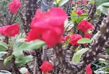 虎刺梅:别称铁海棠,是蔓生灌木植物。茎多分枝,长60-100厘米,直径5-10毫米,具纵棱,密生硬而尖的锥状刺,刺长1-1.5厘米,直径0.5-1.0 毫米,常呈3-5列排列于棱脊上,呈旋转。叶互生…全部>>