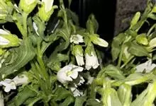 紫斑风铃草是桔梗科风铃草属植物,全体被刚毛,具细长而横走的根状茎。茎直立,粗壮。基生叶心状卵形;茎生叶三角状卵形至披针形。花顶生于主茎及分枝顶端,下垂;花萼裂片长三角形;花冠白色,带紫斑,筒状钟形。…全部>>