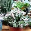 唐印为景天科伽蓝菜属的多年生肉质草本植物。植株中型,株高50厘米,宽20厘米,多分枝;叶片肉质,对生,卵形,全缘,先端钝圆,叶片淡绿色至灰绿色,表面被有厚厚的白粉,光照充足时,叶缘呈红色;圆锥花序,…全部>>