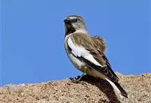 白斑翅雪雀:属典型的高原鸟类,共有7个亚种,体重30-34克,体长142-169毫米,较雪雀属中其他种体型稍大;雄鸟头灰,颏黑,翕和肩富于褐色;翼大部白色;除一对中央尾羽黑色外其余均为白色而具黑色羽端,…全部>>