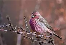 藏朱雀:全长约17-18厘米。雄鸟头部深红色具光辉,喉部暗红色具白色点斑;背部灰白色,各羽具玫瑰红色羽端,形成许多斑纹;腰部淡玫瑰红色;翅暗褐色,沾灰白,羽端沾玫瑰红或灰白色;尾暗棕色,端缘玫瑰红色…全部>>