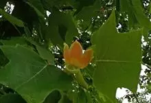 鹅掌楸 Sarg.),别名马褂木、宝剑木、九层皮,为木兰科鹅掌楸属落叶大乔木。小枝灰色或灰褐色;叶马褂状,叶柄长4-8cm;花杯状,浅黄色;果实为聚合果,顶端钝或钝尖;花期5月,果期9~10月。…全部>>