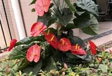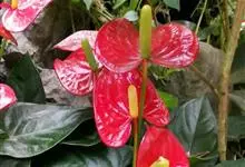 花烛,别名红鹅掌、红掌、安祖花等,为天南星科花烛属的一种多年生草本植物。其茎矮;叶互生,叶片革质,有光泽,阔心形、圆心形,先端钝或渐尖,基部深心形;肉穗花序有细长花序梗,佛焰苞深红色或橘红色,…全部>>