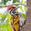 三趾啄木鸟,是啄木鸟科、啄木鸟属的小型鸟类,体长20-23厘米,雄鸟头顶金黄色,雌鸟黑色而具白色斑点。眼至耳覆羽黑色,眼后有一条白色纵纹,颊纹白色,颚纹黑色,甚为醒目。枕和后颈黑色,…全部>>
