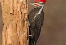 白腹黑啄木鸟,是啄木鸟科、黑啄木鸟属的中型鸟类,体长43-46厘米,头顶具长的红色羽冠,颚纹亦为红色,其余头、颈、胸和上体黑色,腰和腹白色,飞翔时白色腋羽和翅下覆羽亦明显可见。雌鸟头顶黑色,…全部>>