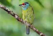 金喉拟啄木鸟,是须鴷科、拟啄木鸟属的鸟类。金喉拟啄木鸟为小型鸟类,体长19-24厘米。额深红色,头顶金黄色,后枕具一大块深红色斑,耳羽和头侧银灰色,上体草绿色,颏和上喉金黄色,下喉淡银灰色,…全部>>